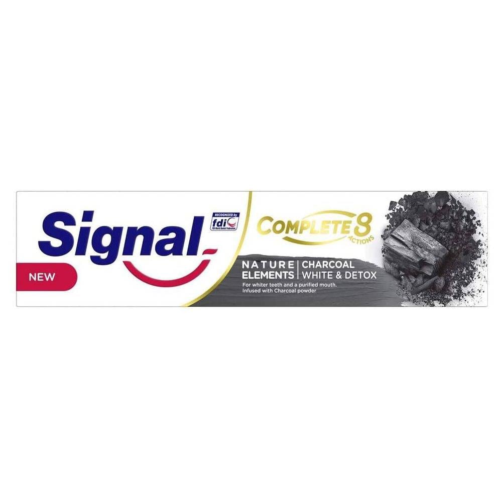 يساعدك معجون أسنان التبييض بالفحم المكون من 8 عناصر طبيعية من سيجنال الجديد على تعزيز حماية صحة الفم، للحصول على أسنان أنظف وأكثر بياضا. يحتوي على معادن الزنك، مضاد للجراثيم من أصول طبيعية وثبت سريريا لمحاربة البكتيريا لصحة الأسنان وابتسامة أكثر بياضا في 2 أسابيع فقط. تركيبة معجون الأسنان مصنوعة من 96 ٪ مكونات ذات أصول طبيعية لأسنان نظيفة وأكثر بياضا، مملوءة بالفحم الطبيعي 100٪.