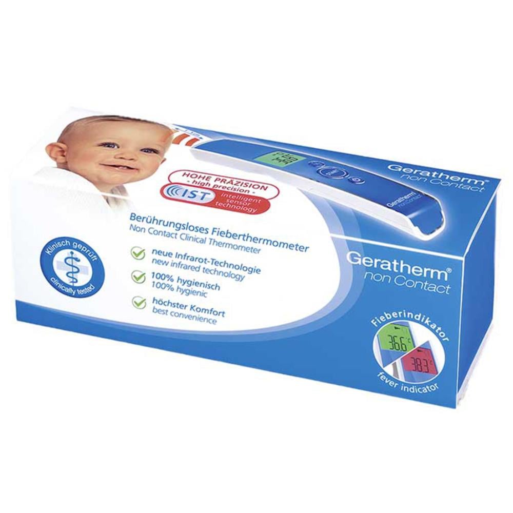 Geratherm® هو مقياس حرارة يعمل بالأشعة تحت الحمراء يعمل بدون تلامس. إنه صحي بشكل خاص لأنه يمكنك قياسه دون لمس الجسم. يقيس مقياس الحرارة الدقيق بالأشعة تحت الحمراء درجة حرارة الجسم من 34 درجة مئوية إلى 42.2 درجة مئوية بدقة +/- 0.2 درجة مئوية. يحتوي على مؤشر حمى مرئي ومسموع ويأتي مع علبة تخزين يدوية.
