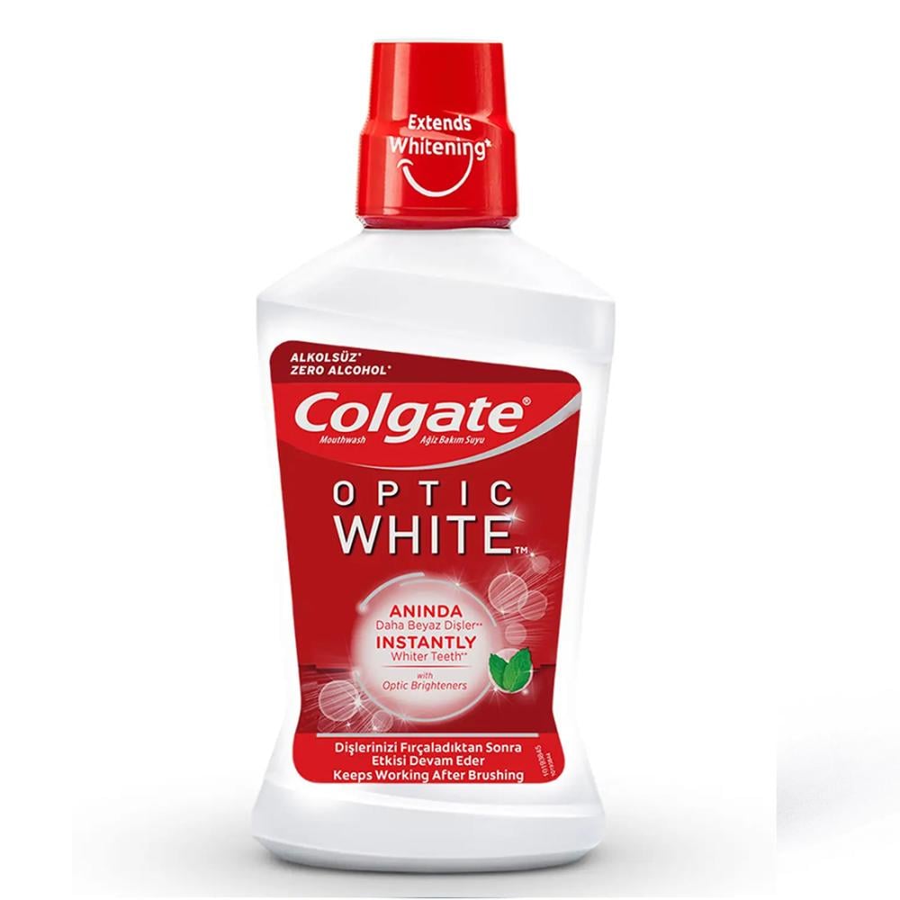 غسول الفم كولجيت أوبتيك وايت وايتنينج ( التبييض)، تم تصنيعه من عناصر تمنحك إشراقة ملحوظة بعد تنظيف الأسنان بمعجون أسنان أوبتيك وايت لتمنحك فوراً أسنان بيضاء رائعة