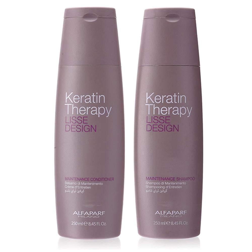 Keratin Therapy is a promotional pack that contains keratin shampoo and conditioner, collagen and pabasso oil to soften and shine hair and preserve the individuality.