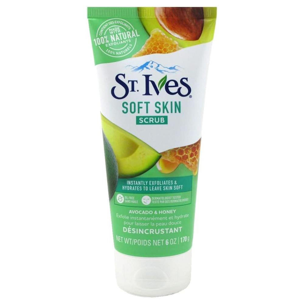 St. Ives Honey & Avocado Gentle Facial Scrub, made with 100% natural honey and avocado extract, instantly exfoliates and hydrates skin, leaving it soft and nourished.