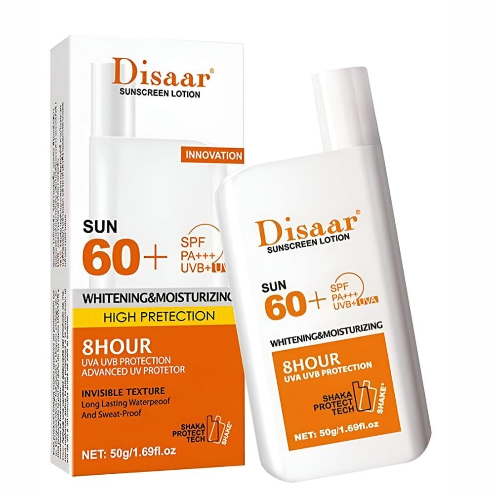 Enjoy perfect and complete protection with Disaar water-resistant sunscreen with SPF 60, designed to give you a feeling of security and comfort throughout the day.