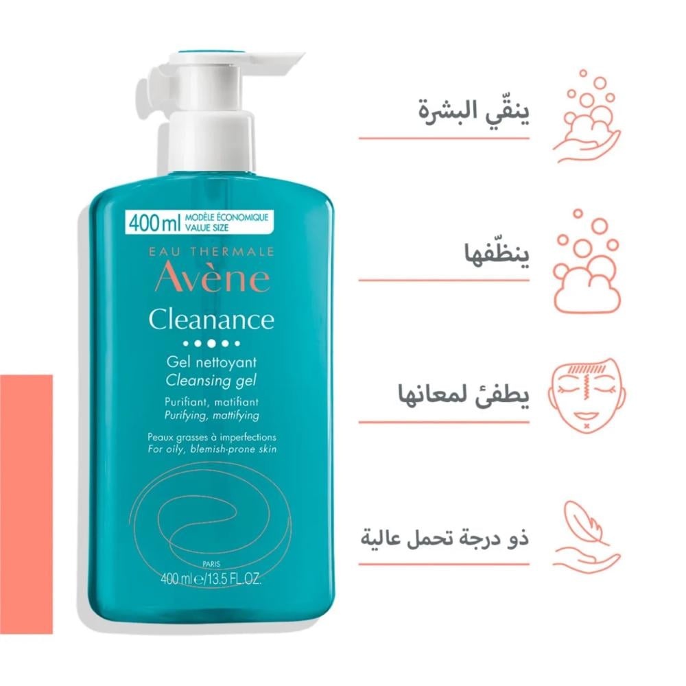 Avene Oily Skin Cleanser - 400 ml An ideal and effective formula that gives you superior cleansing, moisturizing and softness for oily and combination skin. Avene cleanser deeply cleanses the skin from dirt and accumulated oils and gives your skin a smooth texture immediately after use. Avene deeply moisturizes the layers of the skin for a long time without causing the pores to close, which makes you feel refreshed all the time. Avene cleanser helps the skin regain its balance, making it more active and vibrant.